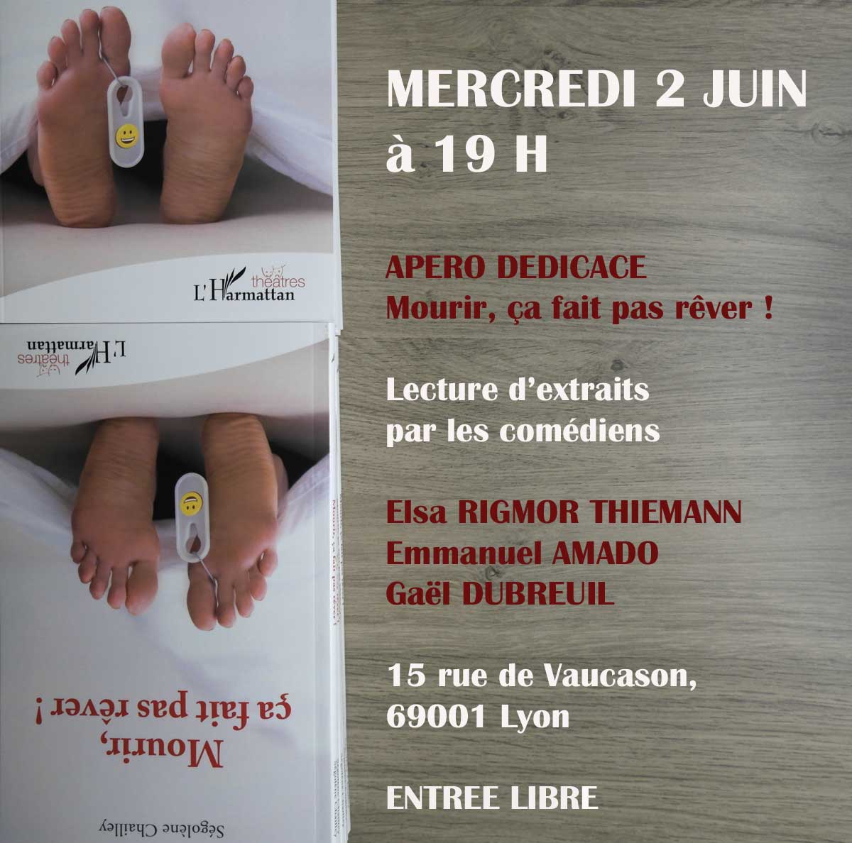 APERO-DEDICACE Mourir, ça fait pas rêver ! Soirée DÉDICACE comédie de Ségolène Chailley, éditions L’Harmattan Mourir, ça fait pas rêver !
