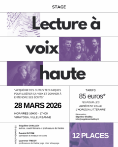 - Nouveau stage ! Samedi 28 mars (intervenants : Ségolène Chailley, Laurence Tricot, Patrick Guyon) : Stage Lire à voix haute, donner à entendre un texte